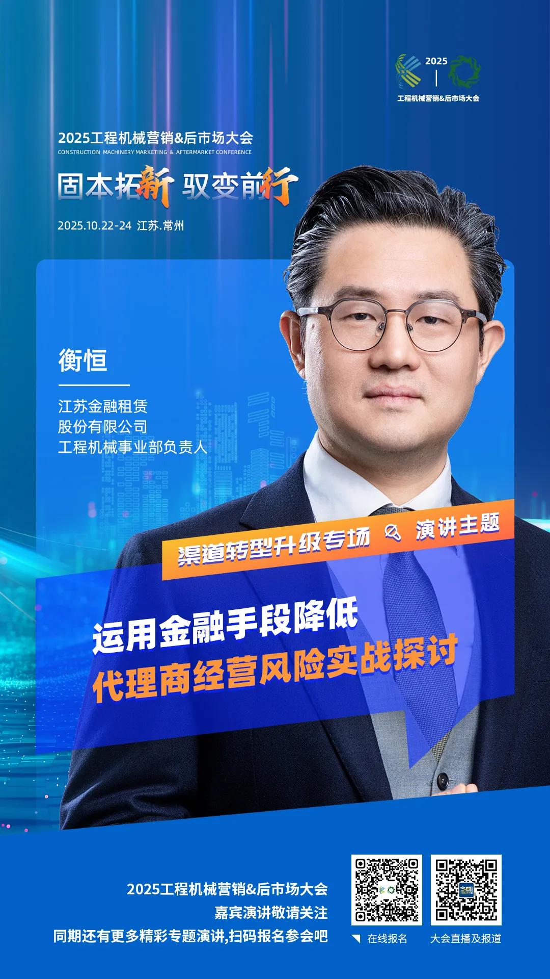 “2025工程机械营销&后市场大会”将于10月22-24日在江苏常州举行。目前报名渠道均已开启!