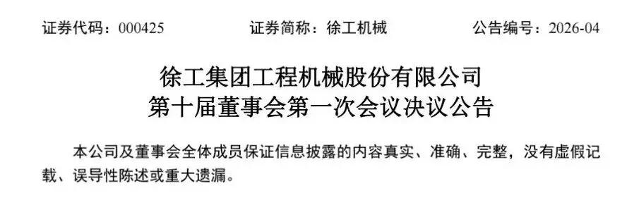 1月15日,徐工集团工程机械股份有限公司(以下简称“公司”)召开2026年第一次临时股东会及第十届董事会第一次会议,顺利完成董事会换届选举与高级管理人员聘任工作。
