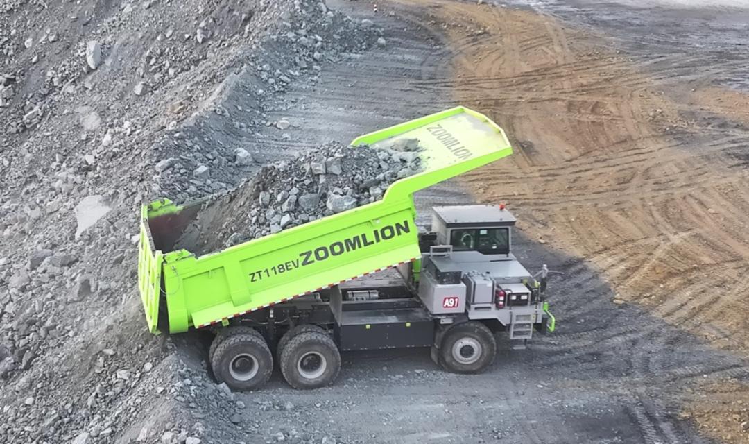 中联重科纯电动非公路宽体自卸车ZT118EV正在作业