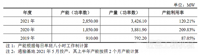 招股说明书显示,2020年三一重能采取轮班工作制,产线全天24小时不间断运转,当年产能利用率达209.83%;2021年,产能利用率达120.21%。