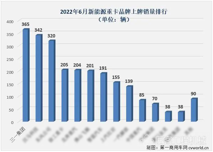 数据显示,今年1-6月,三一新能源重卡累计销量1405台,接近去年全年销量。其中销量最高的6月份,三一新能源重卡销量365辆,今年第二次摘得月销量榜冠军。