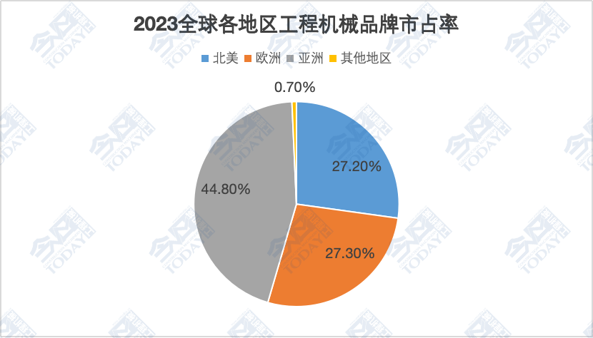 图3 2023年全球各地区工程机械品牌市占率