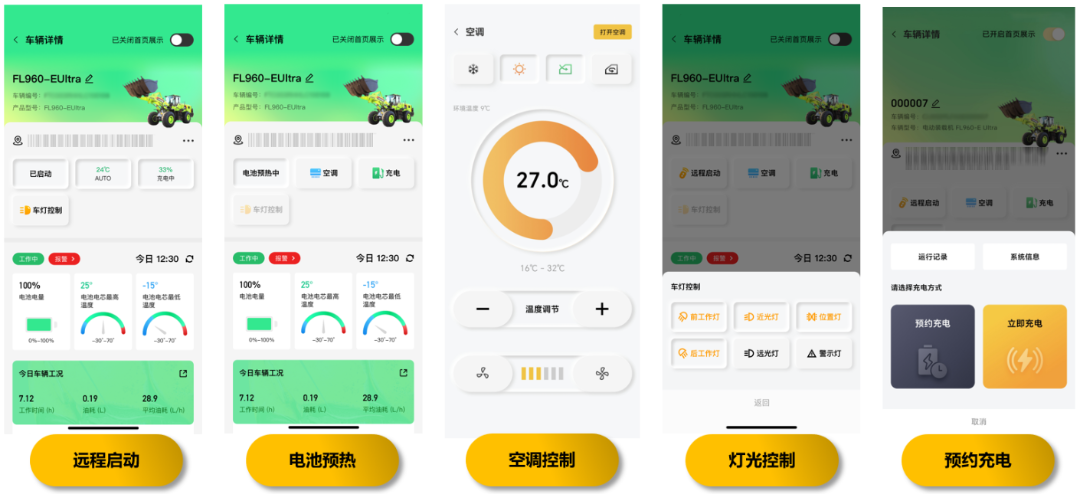 支持远程启动、电池预热、空调控制、灯光控制、预约充电等功能,用户实现足不出户查看车况,提高用车的舒适性及安全性。