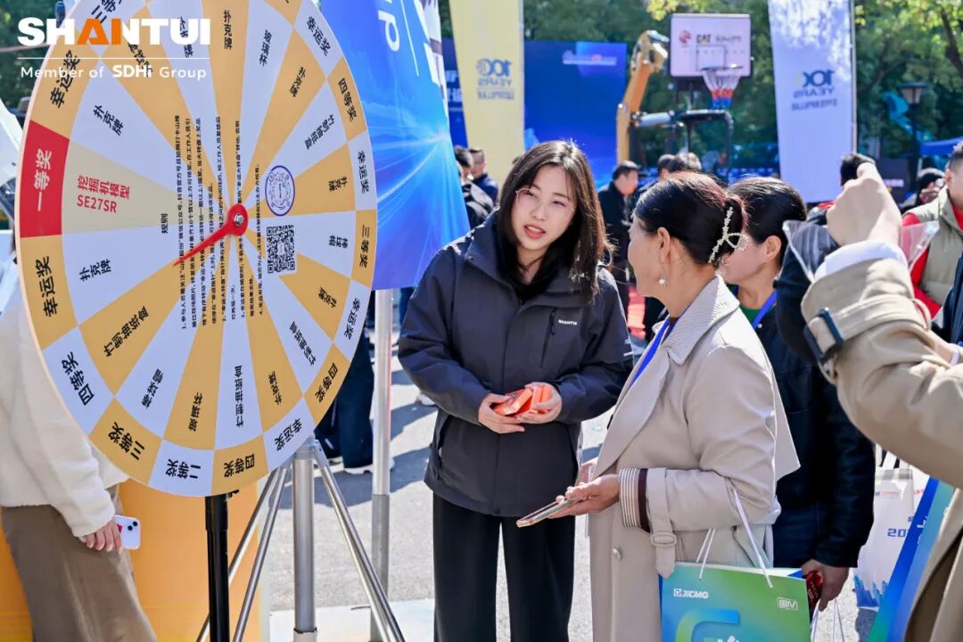 为增强现场参与感,山推特别设置了转盘抽奖互动区与现场直播讲解活动。趣味十足的互动环节吸引了大量观众参与,现场掌声与笑声不断;而直播镜头则将山推微挖的非凡表现实时传递至全国各地,让更多用户见证山推的品牌风采。