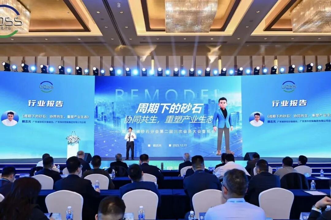 会议现场,广东省砂石分会会长、广东东升控股集团有限公司总裁赖志光发表题为《周期下的砂石:协同共生,重塑产业生态》的主旨演讲,深刻剖析行业发展大势。他指出,在当前多重经济周期叠加、行业深度调整的关键阶段,砂石行业正从高速增长的扩张期,转向以“存量提质、结构优化”为核心的高质量发展新周期。在此背景下,广东砂石市场面临供需重塑、竞争逻辑转变等挑战,这要求我们必须理解周期、顺应周期、在周期下积极发挥主观能动性。