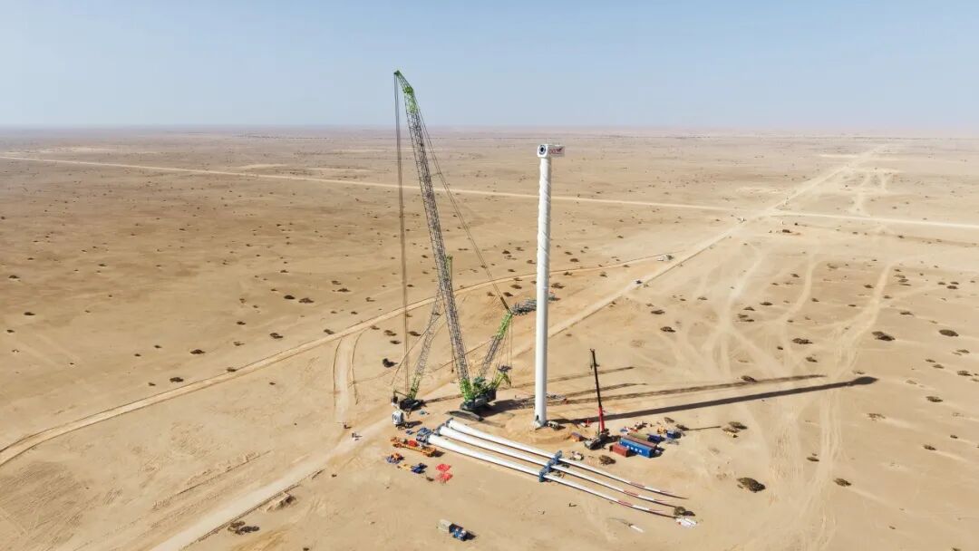 现场相关项目负责人直言:“沙漠环境中安装大型风电机组挑战重重,中联重科设备确保了整个安装过程的安全高效,是项目顺利推进的重要保障。”