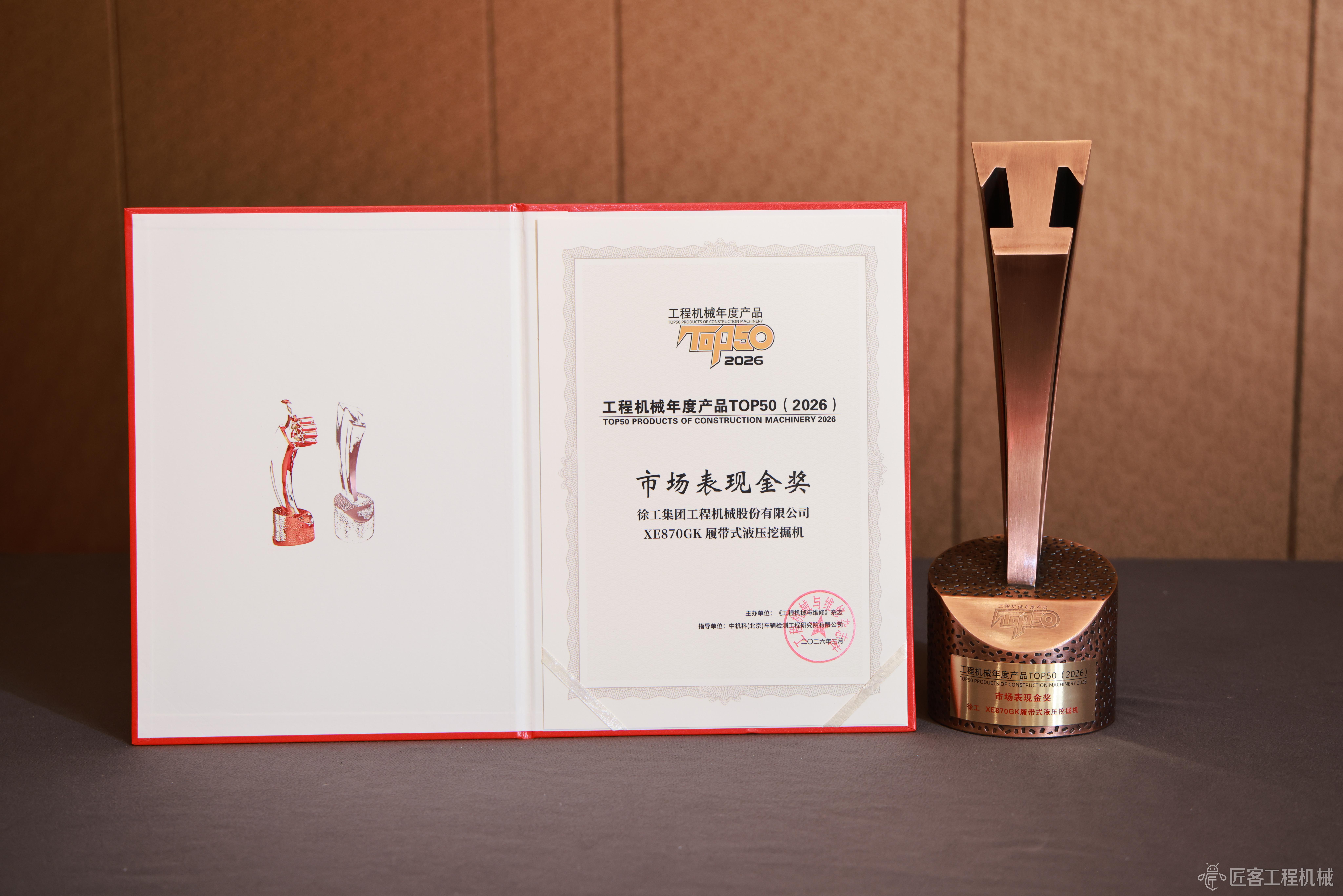 2026CM TOP50丨徐工XE870GK履带式液压挖掘机荣获2026工程机械年度产品市场表现金奖