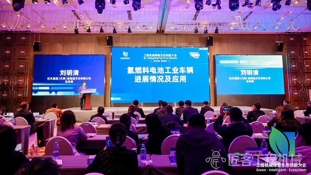 在大会备受瞩目的“场景深耕”板块上,杭叉集团(天津)新能源叉车有限公司总经理刘明清发表了题为《氢燃料电池工业车辆进展情况及应用》的主题演讲。