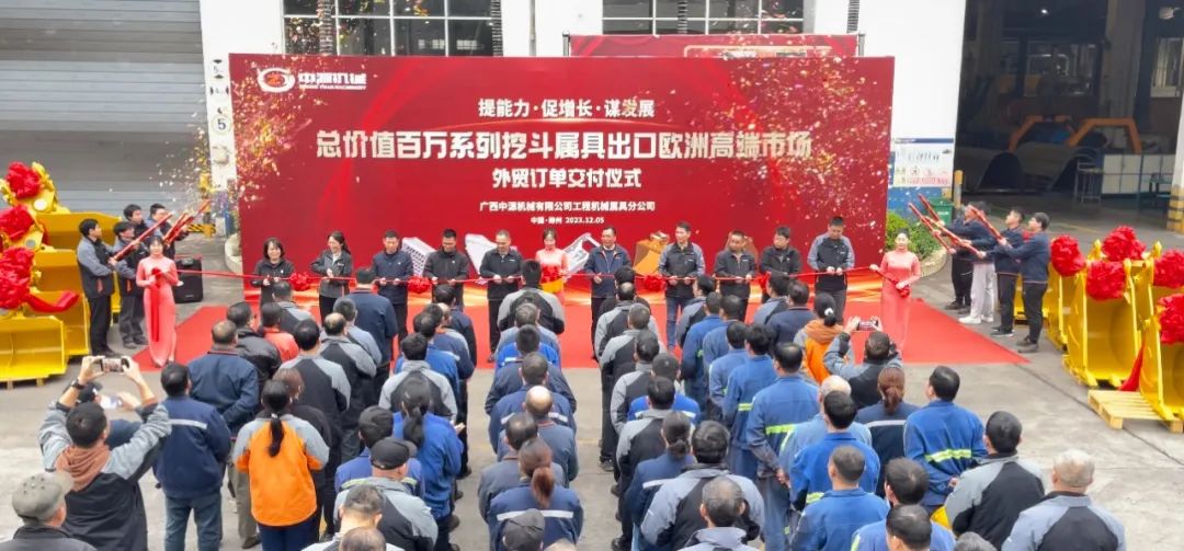12月5日,广西中源机械有限公司工程机械属具公司(以下简称“中源属具分公司”)举行属具批量交付仪式。