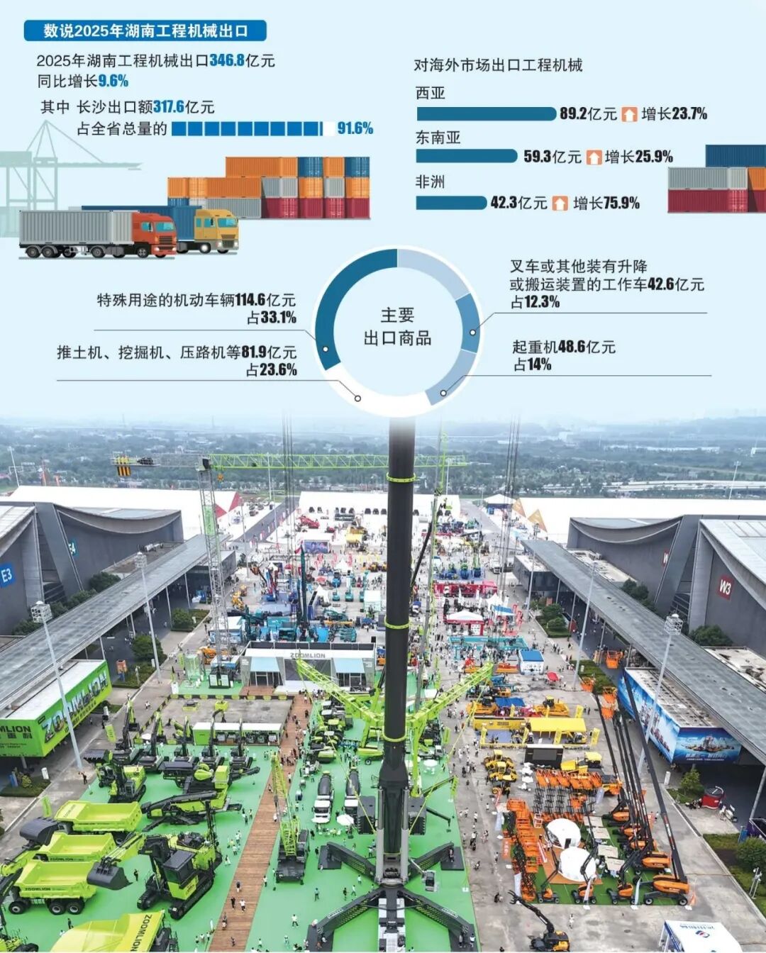 2025年湖南工程机械出口346.8亿元,长沙工程机械出口占全省九成