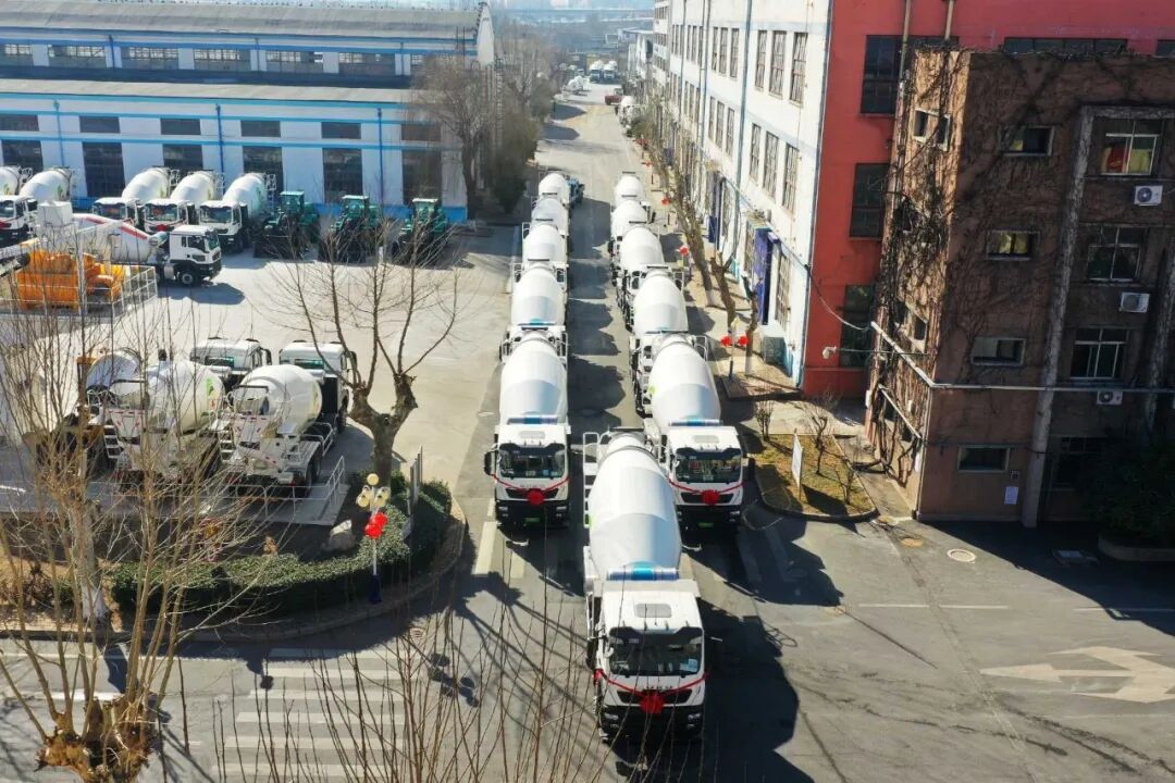 近日,山推纯电搅拌车整齐列队,正式启程发往河北某工地。这批“绿色先锋”将以零排放、低能耗、高性能的突出优势,为当地工程建设提供清洁高效的混凝土运输解决方案。